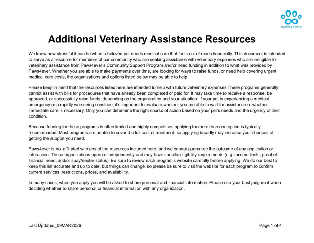 Additional Veterinary Assistance Resources Mar 11, 2026 | 0 comments Submit a Comment Cancel replyYour email address will not be published. Required fields are marked *Comment * Name * Email * Website Save my name, email, and website in this browser for the next time I comment. Δ