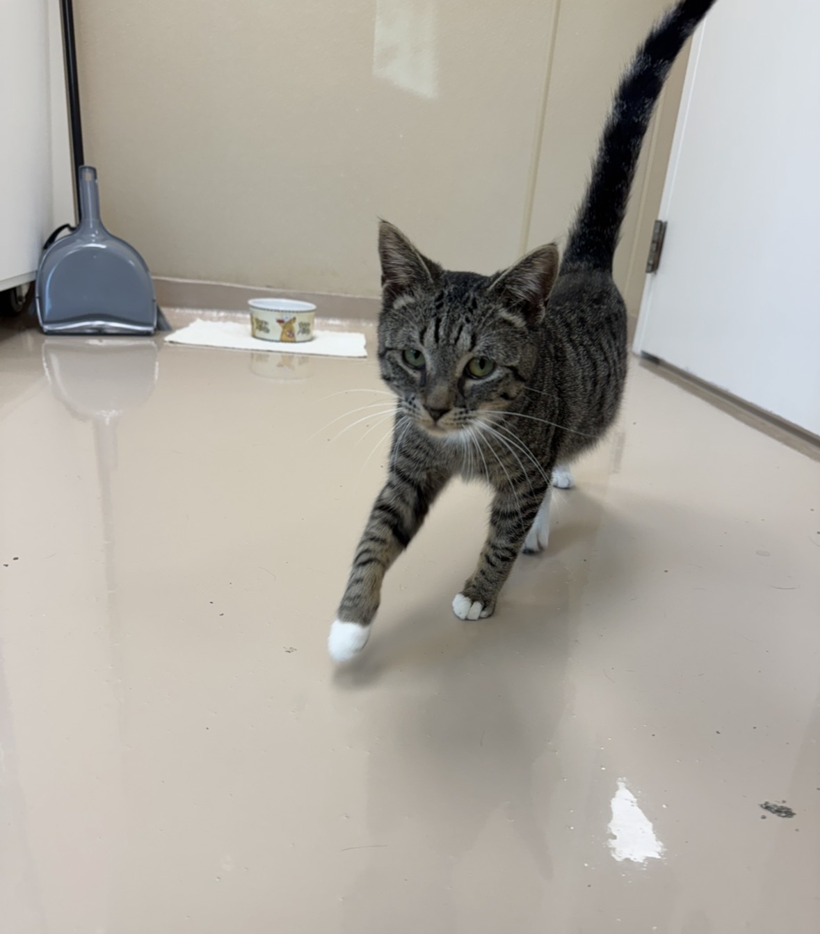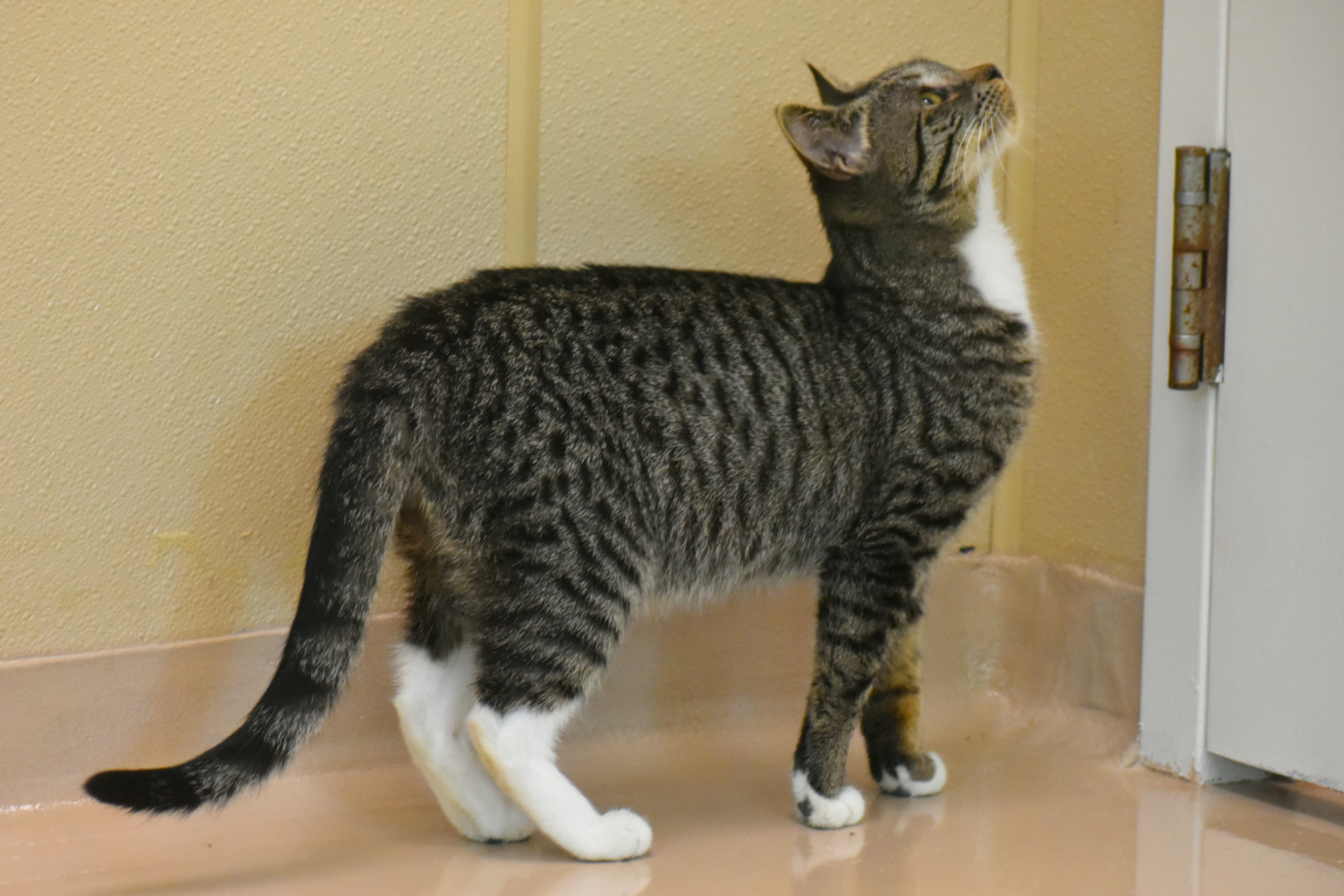 Hi I’m Clay! I’m a grey and white kitty with a very big heart. My favorite place in the whole world is right next to my favorite person, rubbing against you and following you around just to keep you company.